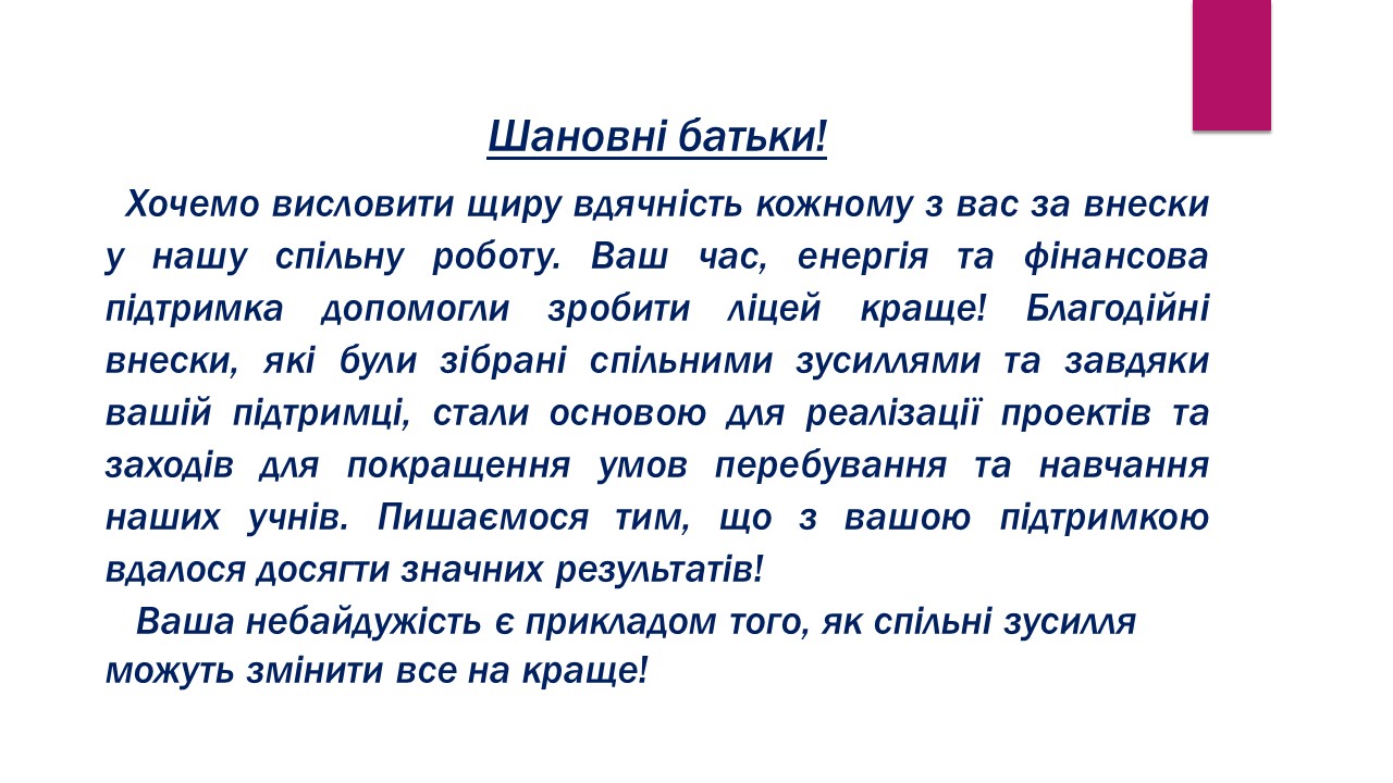 Звіт за 2024-2025 навчальний рік щодо використання благодійних внесків